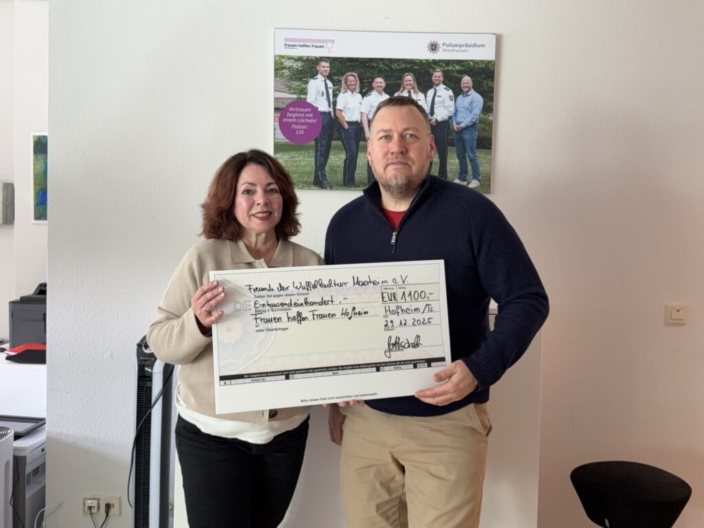 Heute konnten wir Frau Petra Gokkenbach vom Vorstand des Vereins einen „Scheck“ in Höhe von 1100€ übergeben. Die Freunde der Waffelkultur Marxheim e.V. wollen sich an dieser Stelle bei Frauen helfen Frauen Main-Taunus-Kreis e.V für die wichtige Arbeit an der Gesellschaft bedanken, die nicht hoch genug wertgeschätzt werden kann.